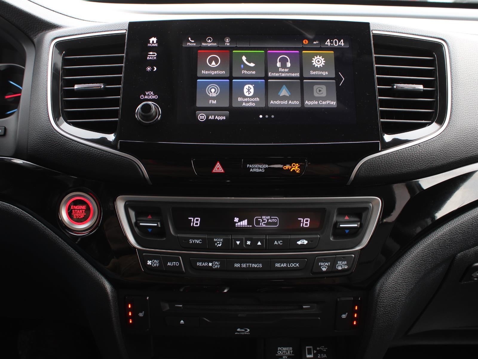 - Radio: 590-Watt Premium Audio System -inc: 10 speakers, subwoofer, 8" display audio w/high-resolution electrostatic touch-screen and customizable feature settings, 2.5-amp USB smartphone/audio interface front console (1 port), Bluetooth® HandsFreeLink, Bluetooth® streaming audio, MP3/auxiliary input jack, Radio Data System (RDS), Speed-Sensitive Volume Compensation (SVC), 2.5-amp USB charging port in center console (1 port) and 2nd row (2 ports), HondaLink, CabinControl remote compatibility, Apple CarPlay integration, Android Auto integration, SMS text message function (Compatible w/select phones w/Bluetooth®, Your wireless carrier's rate plans apply, State or local laws may limit use of texting feature, Only use texting feature when conditions allow you to do so safely.), SiriusXM radio (SiriusXM services require a subscription after any trial period, If you decide to continue your SiriusXM service at the end of your trial subscription, the plan you choose will automatically renew and bill at then-current rates until you call SiriusXM at 1-866-635-2349 to cancel, See our customer agreement for complete terms at www.siriusxm.com, Fees and programming subject to change, Available in the 48 contiguous United States and D.C, SiriusXM and all related marks and logos are trademarks of SiriusXM Radio Inc, HD Radio, CabinTalk in-car PA system through headphones, HondaLink subscription services (HondaLink subscription services come w/complimentary trials of security for 1 year and a remote/concierge trial for 3 months, Enrollment is required to access the remote/concierge trial and to access certain features of security, At the end of each trial period, purchase of a subscription is required to continue the respective services.), Wi-Fi hotspot capability (Requires AT&T data plan.) and multi-zone audio